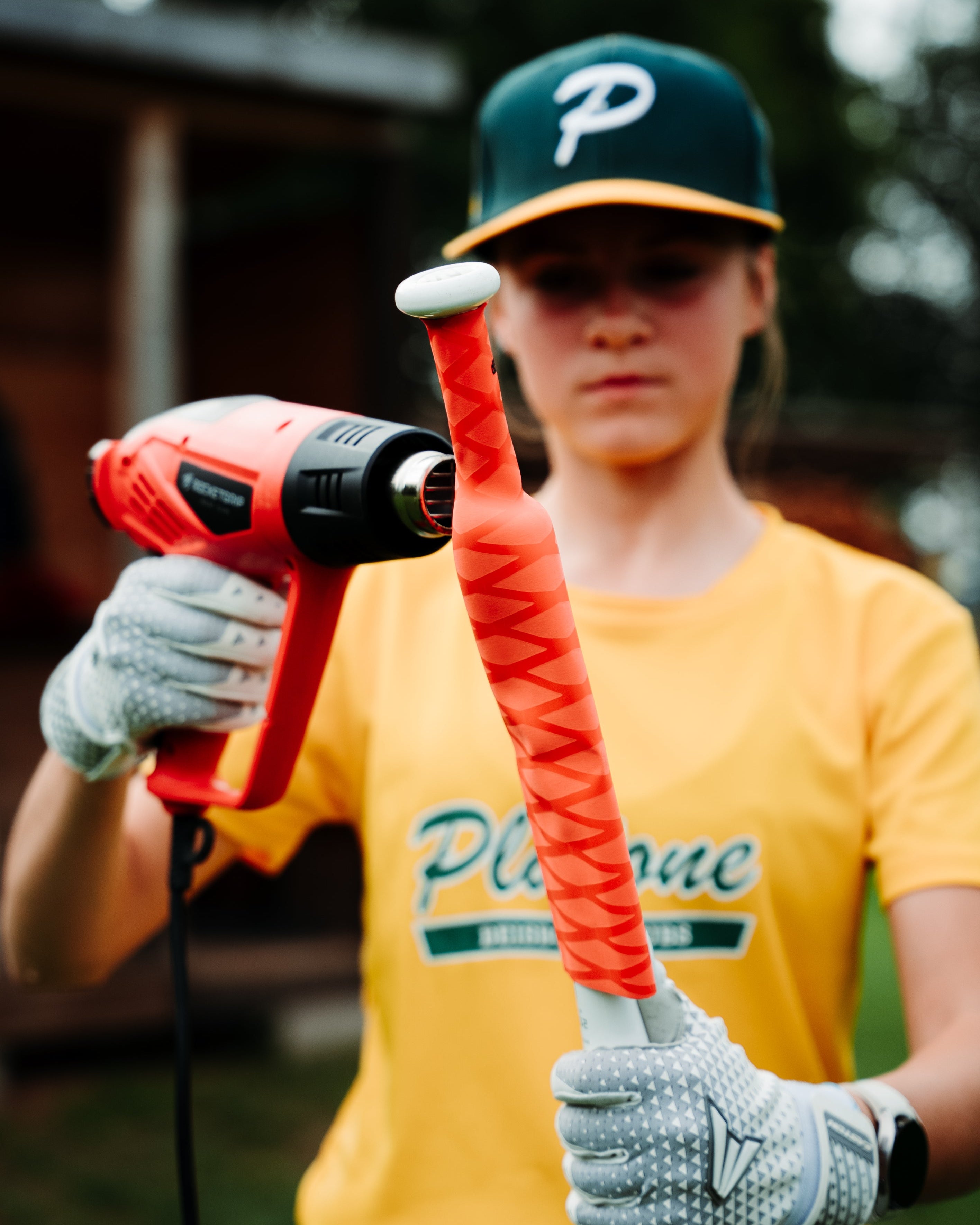 Slide the grip over your bat handle, then use a heat gun to shrink it into place. The grip molds securely to your bat in just a few minutes.